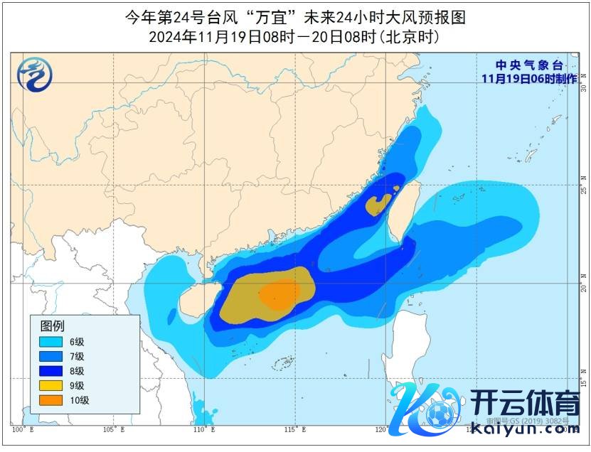 图2 第24号台风“万宜”将来24小时大风预告图(11月19日08时-20日08时)