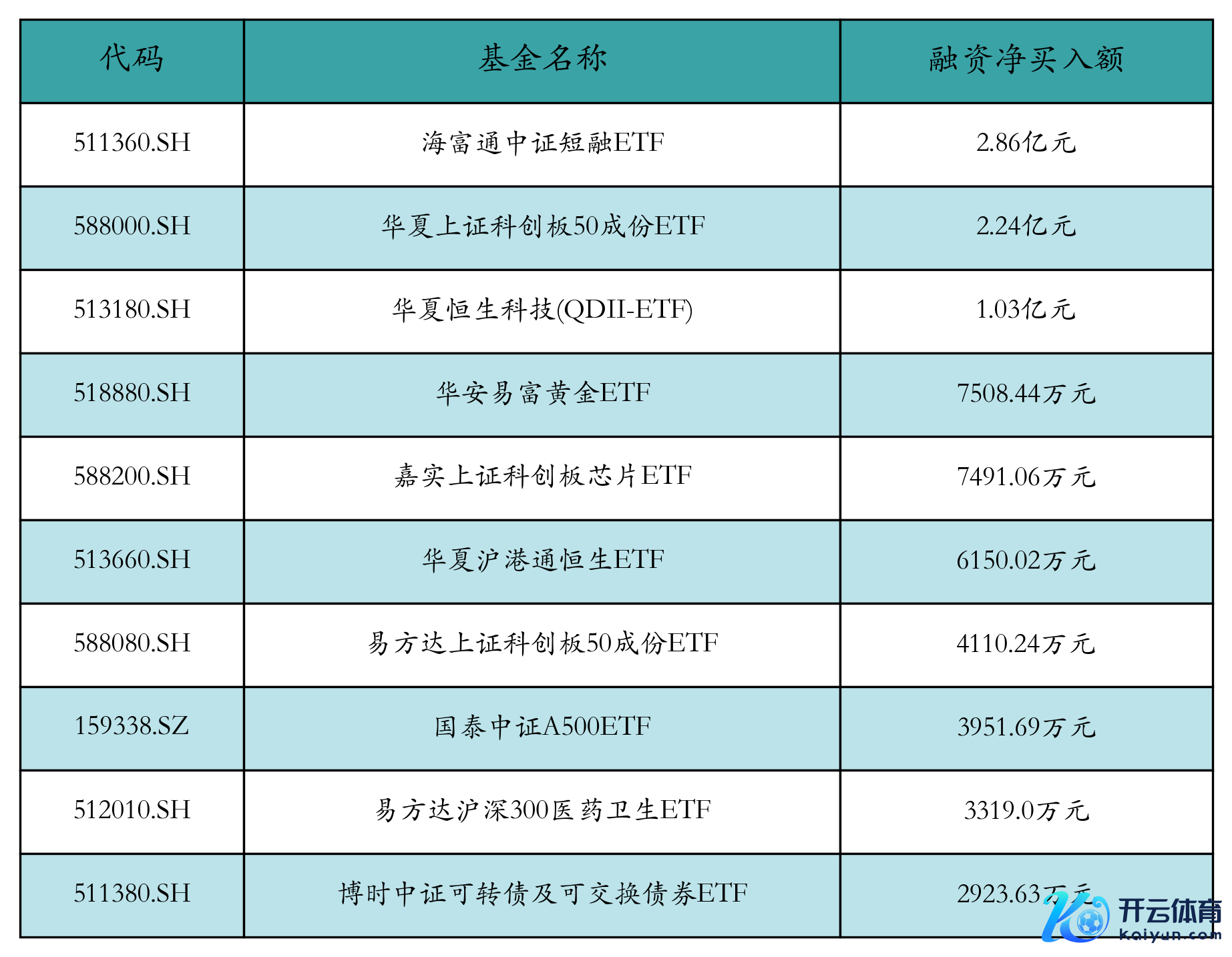 1月16日ETF融资净买入额前三位永别为:海富通中证短融ETF(2.86亿元)、中原上证科创板50成份ETF(2.24亿元)和中原恒生科技(QDII-ETF)(1.03亿元),前10具体见下表: