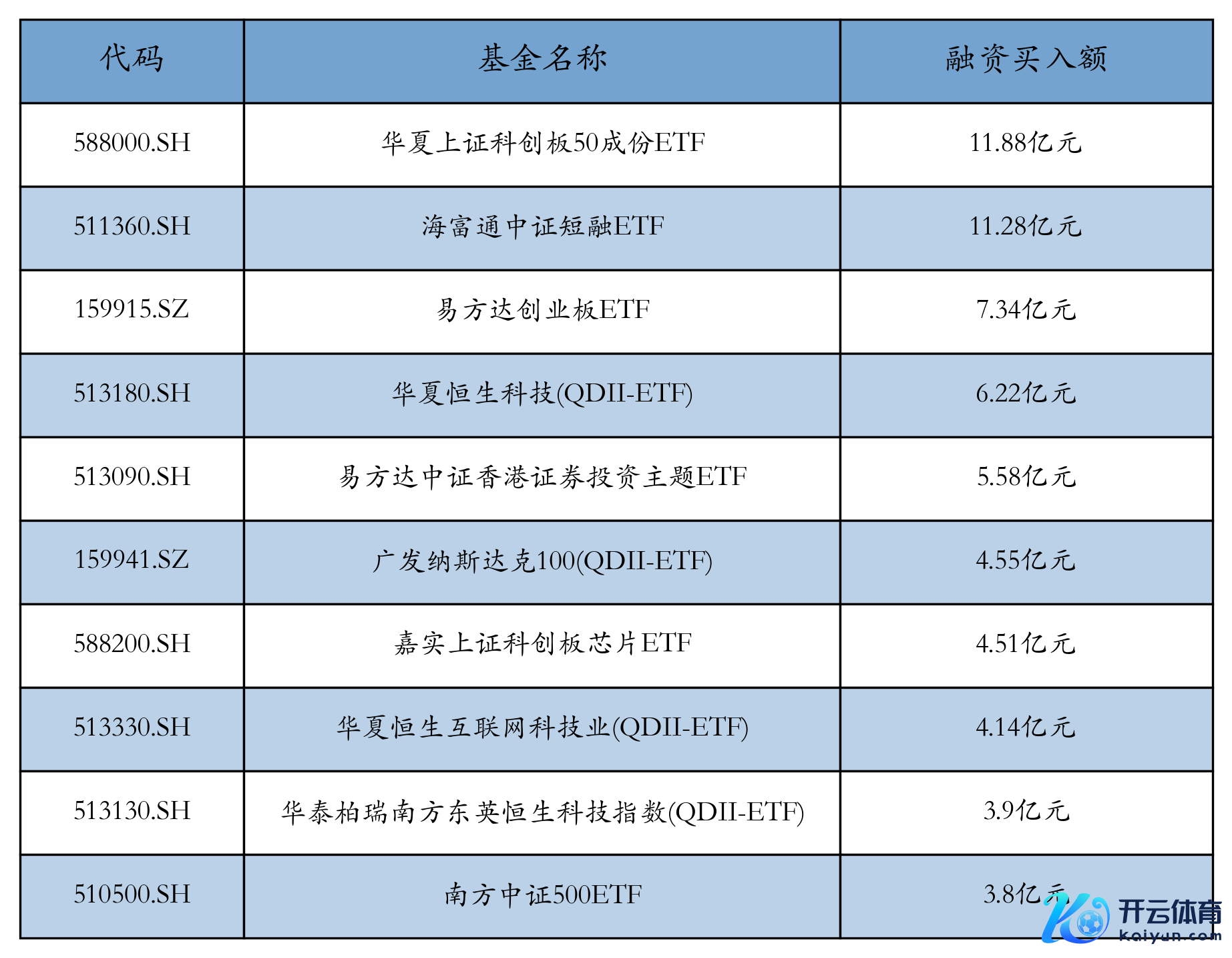 1月16日ETF融资买入额前三位永别为:中原上证科创板50成份ETF(11.88亿元)、海富通中证短融ETF(11.28亿元)和易方达创业板ETF(7.34亿元),前10具体见下表: