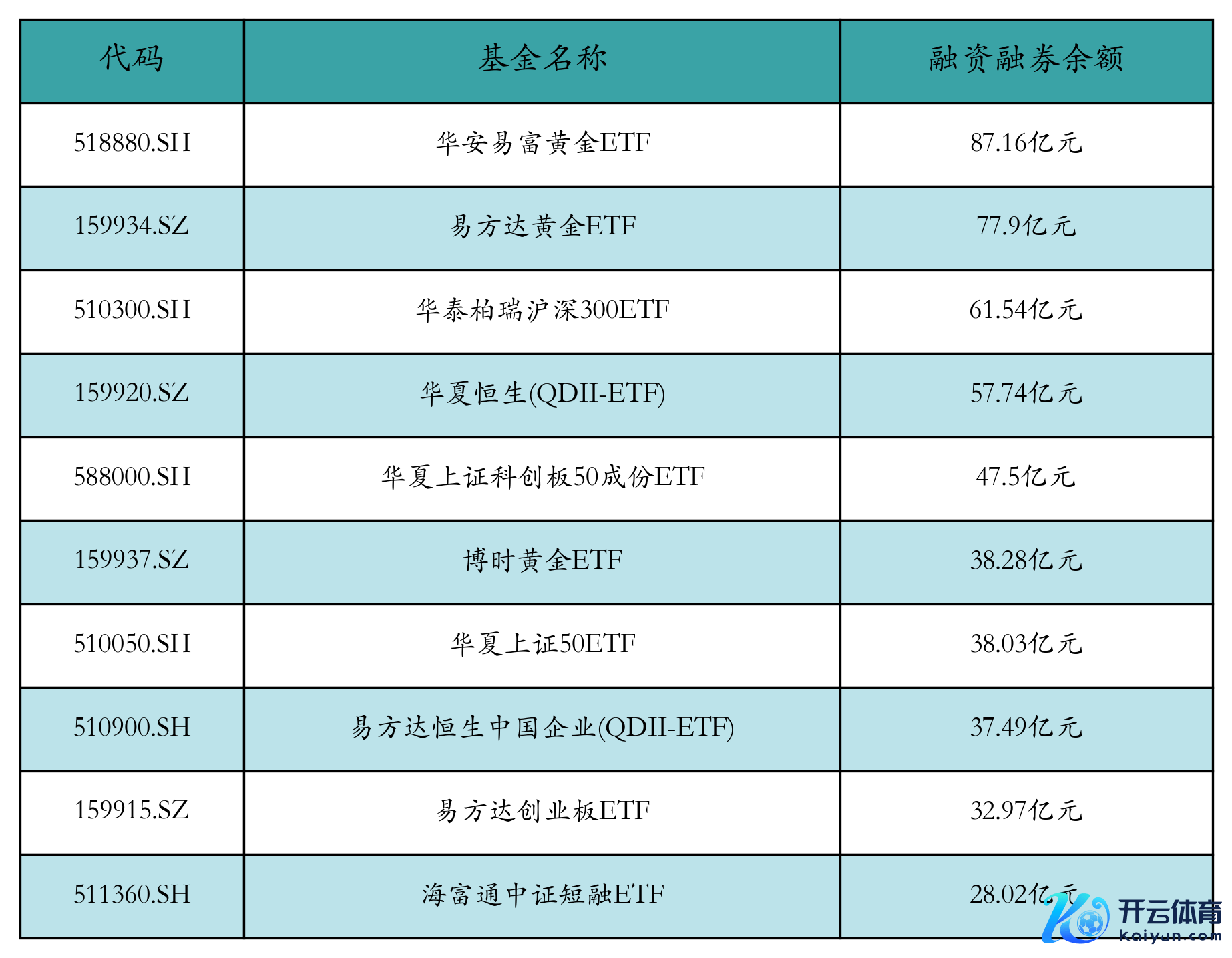 1月16日ETF两融余额前三位永别为:华安易富黄金ETF(87.16亿元)、易方达黄金ETF(77.9亿元)和华泰柏瑞沪深300ETF(61.54亿元),前10具体见下表:
