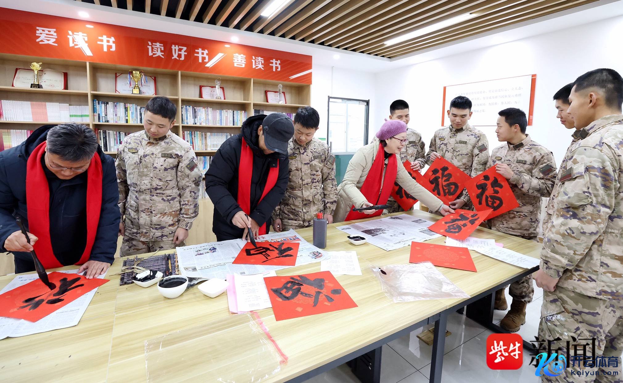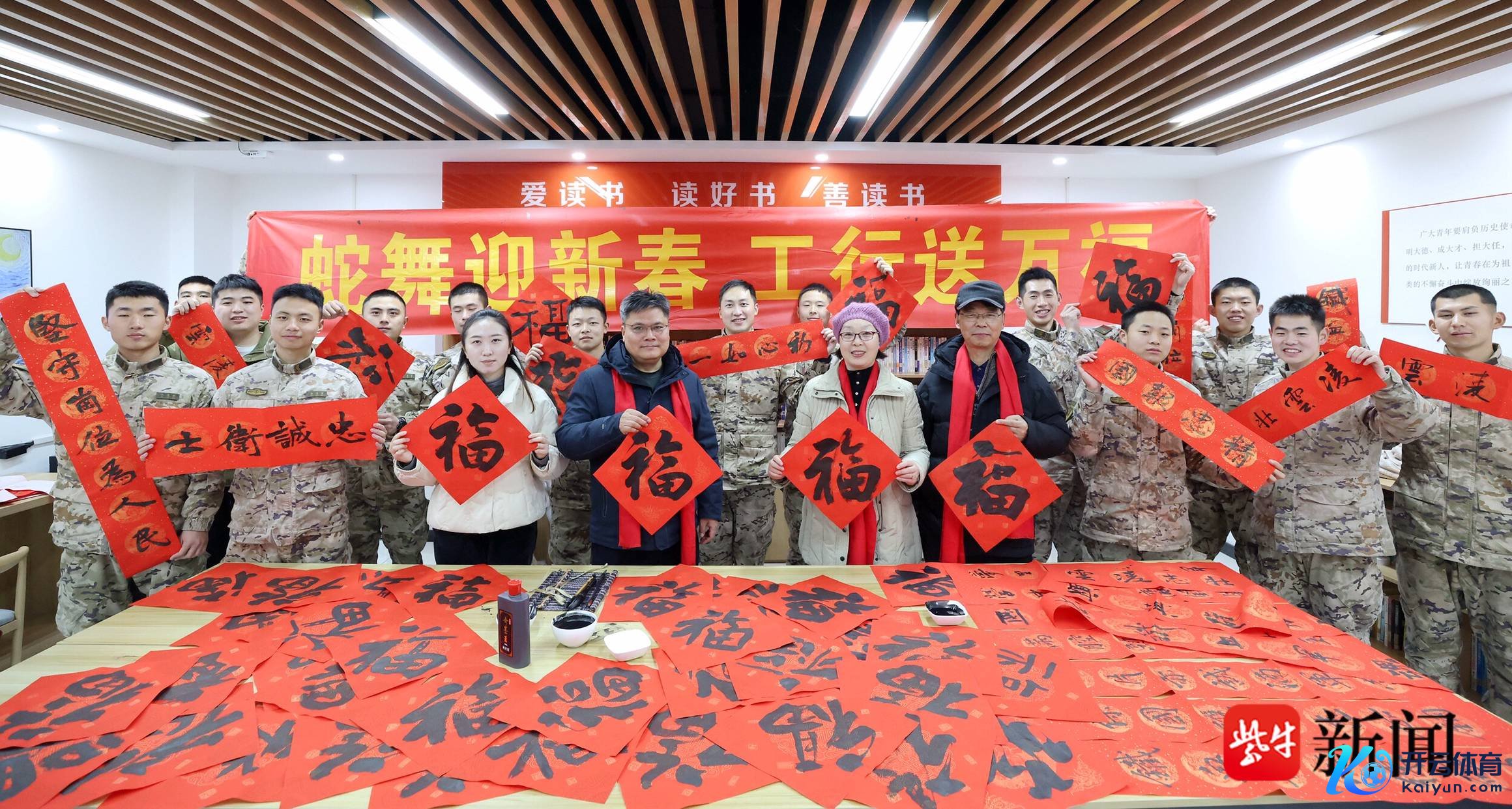 扬子晚报网1月27日讯(通信员 赵红伟 记者 陈咏)“强军路上春潮涌,钢铁营中士气高”“兵怀壮志国防兴万博manbext网页版登录app官网,蛇舞新春营垒固”……26日,武警扬州支队某中队官兵手捧一幅幅饱含新期间军营气味的对联、“福”字和书道作品,一脸喜悦。本日,工商银行扬州分行“蛇舞迎新春,工行送万福”写对联、送“福”字行为来到该中队营区,向官兵们奉上新春的道喜。