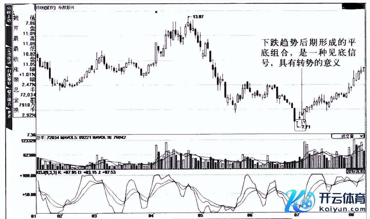 平底又称之为“钳子底”,其特征是不才跌行情中,当某根K线的最廉价(包括下影线在内)与后一根或几根周边的K线的最廉价位处在归并水平位置上时就组成了平底。平底是见底回升的信号,淌若它在股价有了较大跌幅之后出现,所教唆的股价回转的可能性就大,投资者见此K线形态出面前,不错探究适量买进。